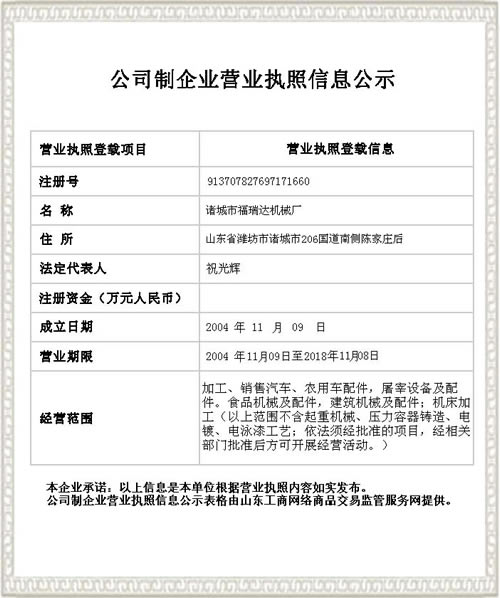 • 公司簡介      諸城市福瑞達機械有限公司 是一家專業(yè)開發(fā)設(shè)計,生產(chǎn)制造畜禽屠宰設(shè)備的私營企業(yè).位于山東省諸城市龍都工業(yè)園,緊靠206國道,膠新鐵路,交通十分便利.       我廠現(xiàn)有中,高級技術(shù)人員數(shù)名,有多年的設(shè)計與制造畜禽宰殺機械的理論和經(jīng)驗.可根據(jù)客戶的要求進行前期的工藝設(shè)計及流程布局,中期的設(shè)備安裝與調(diào)試,以及后期的售... [詳細內(nèi)容]